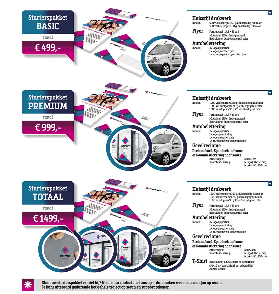 We bieden verschillende pakketten tegen scherpe prijs. Hiermee heb je alles in één keer geregeld – geen onnodig gereis en gedoe meer tussen verschillende bedrijven.